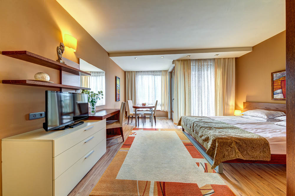 - Настаняването в апартаментите е след 14:00 часа, Напускането до 12:00 часа